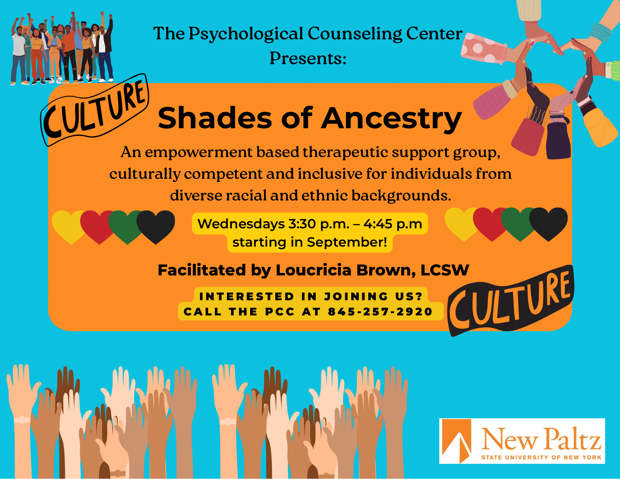 Shades of ancestry is a culturally competent and inclusive counseling group for individuals from diverse racial and ethnic backgrounds. With respect, encouragement and hope, this group offers a unique understanding of the challenges and experiences faced by all communities. Using a social justice lens, we strive to create a safe space where you can be your authentic self while gaining coping skills, improving your mental health, and feeling supported.