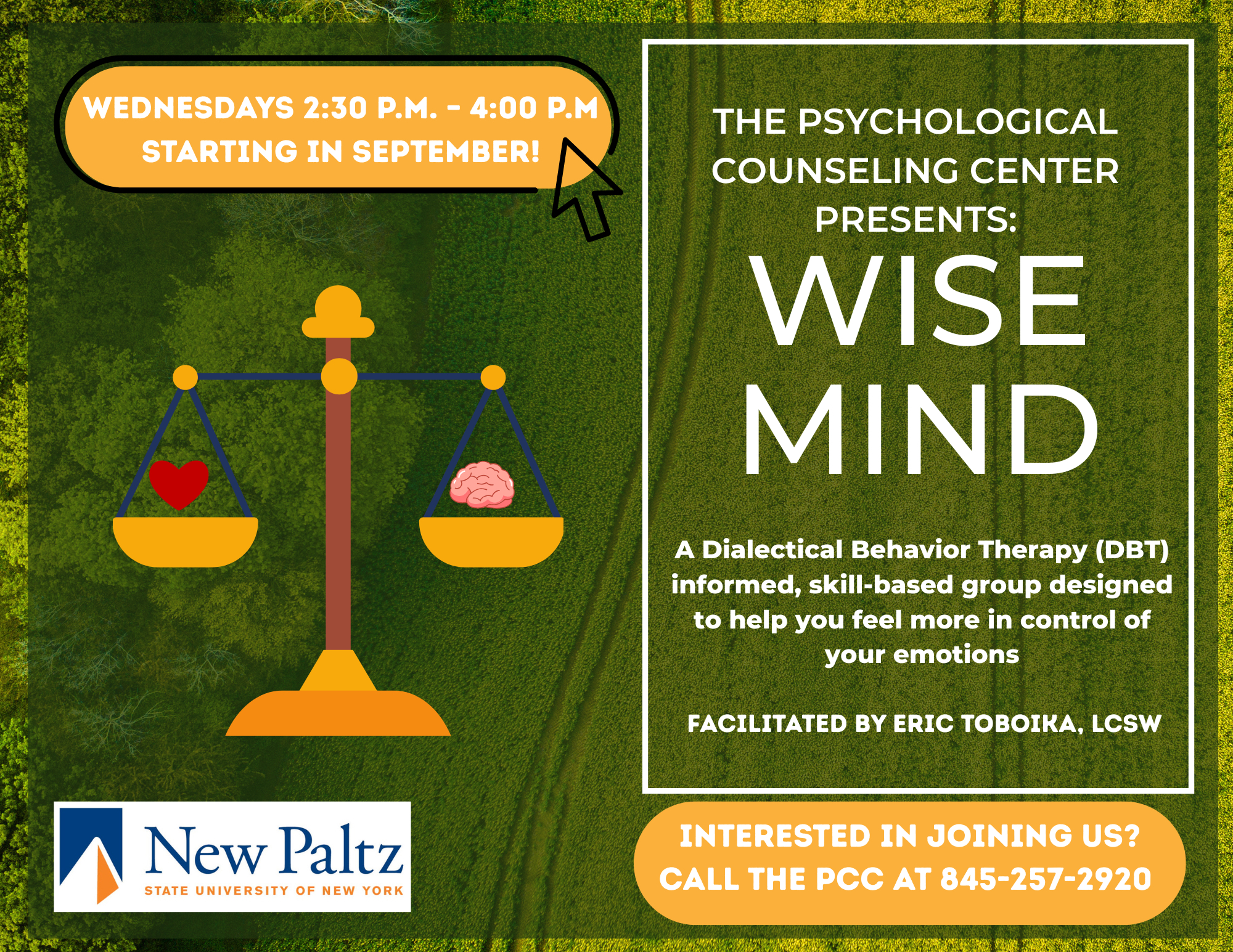Wise Mind Wednesdays 2:30 p.m. – 4:00 p.m., facilitated by Eric Toboika, LCSW