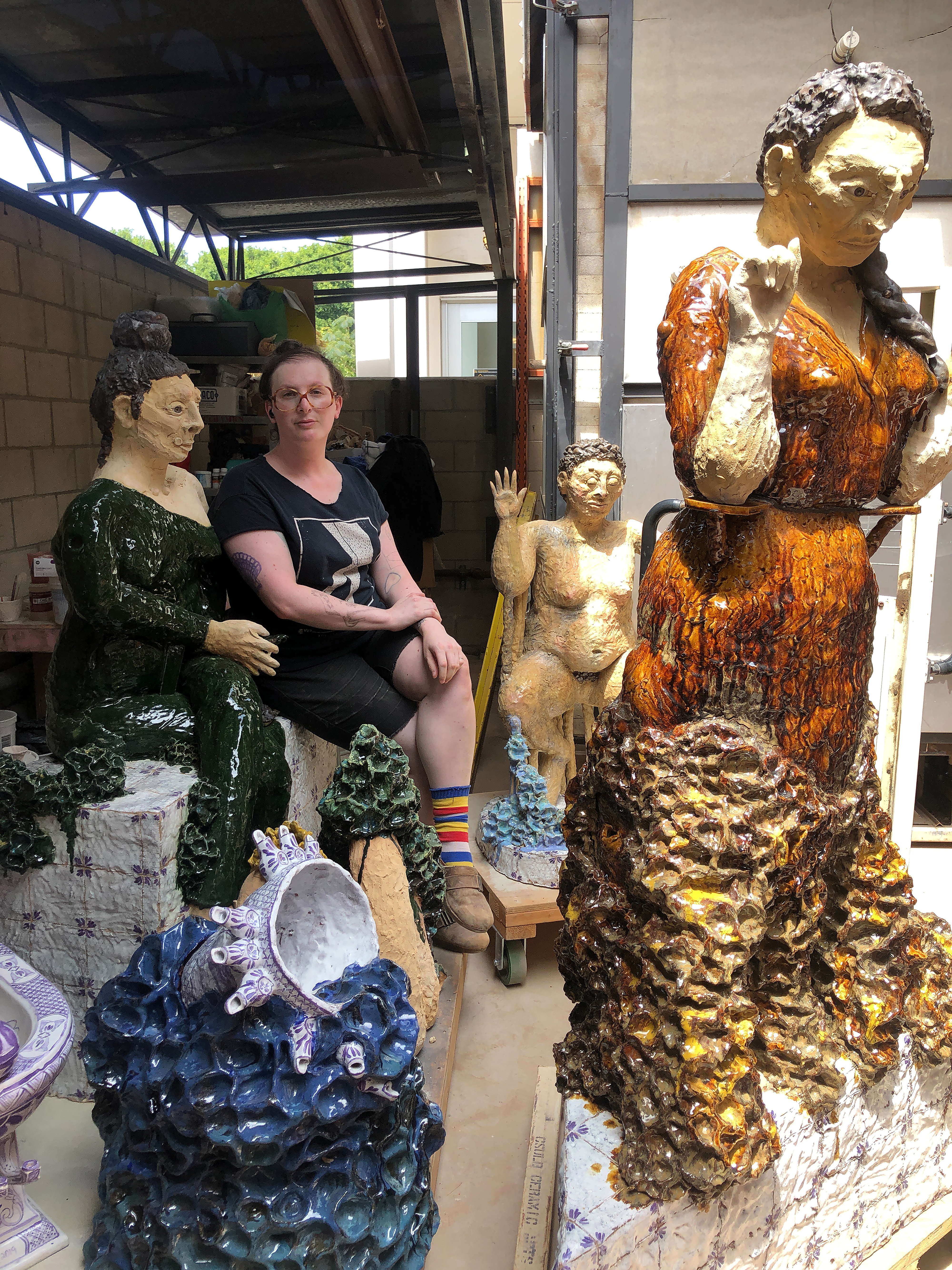 Nicki Green is a transdisciplinary artist working primarily in clay. Her sculptures, ritual objects and various flat works explore topics of history preservation, conceptual ornamentation and aesthetics of otherness. Often constructing heavily ornamented painted glaze surfaces and experimental, organic building techniques, Green explores material and object integrity by utilizing transness as a lens with which to look at the world.