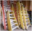 Store ladders in a manner that provides easy access for inspection and permits safe withdrawal for use. Ladders must not be stored where they present a tripping hazard, or where they can fall on personnel. When stored horizontally, ladders should be supported at several points to avoid sagging. The ladders should be kept away from sources of heat and moisture and in a well-ventilated area. Aluminum ladders should not be stored in certain atmospheres (e.g., acidic) due to severe corrosion problems. Ultraviolet rays of the sun can cause deterioration in fiber-glass ladders. Wax fiber-glass ladders with paste wax for extended storage and increased life span of use.