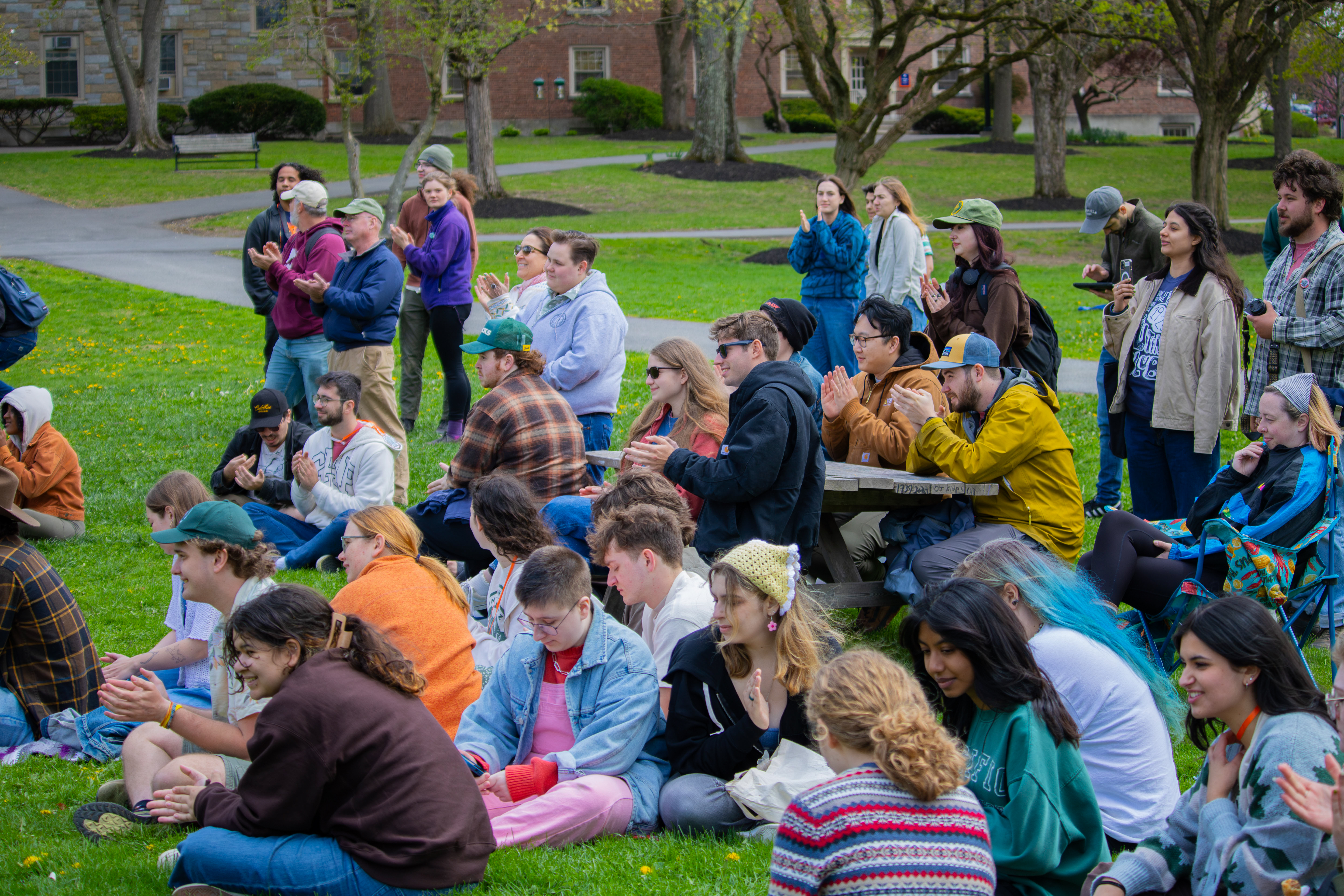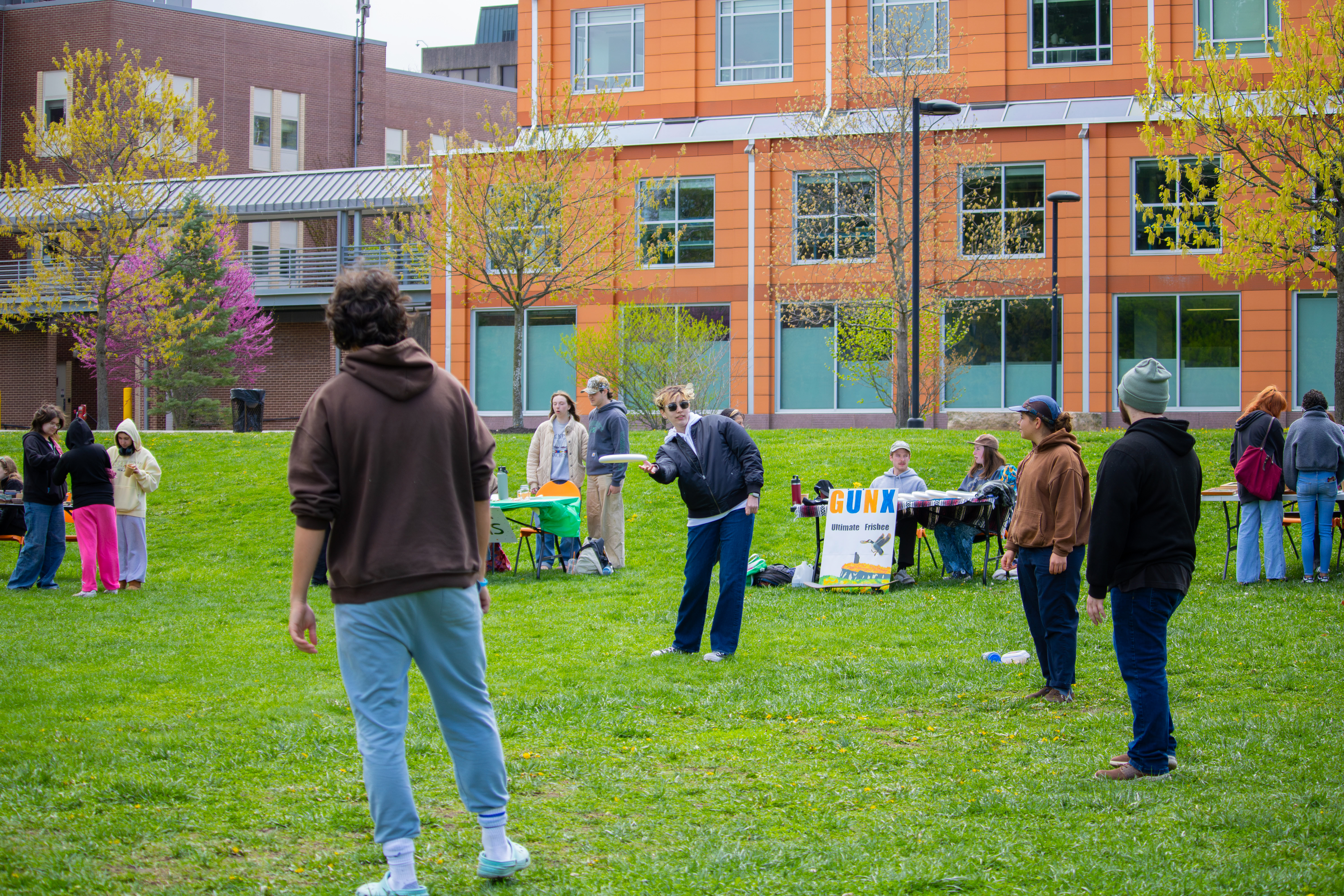The New Paltz Outing Club hosted its Centennial Celebration in April 2025 on Old Main Quad, inviting current members, alumni and partners across campus for a day of connecting with friends, flipping through old yearbooks, enjoying live music, hearing speeches from past presidents, and celebrating partnerships that helped support the club throughout the years.